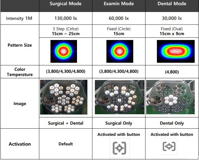 | Druh svítidla – Chirurgický režim | pomocné (ošetřovací) svítidlo | Známé hlavně jako operační lampa pro malou chirurgii. |