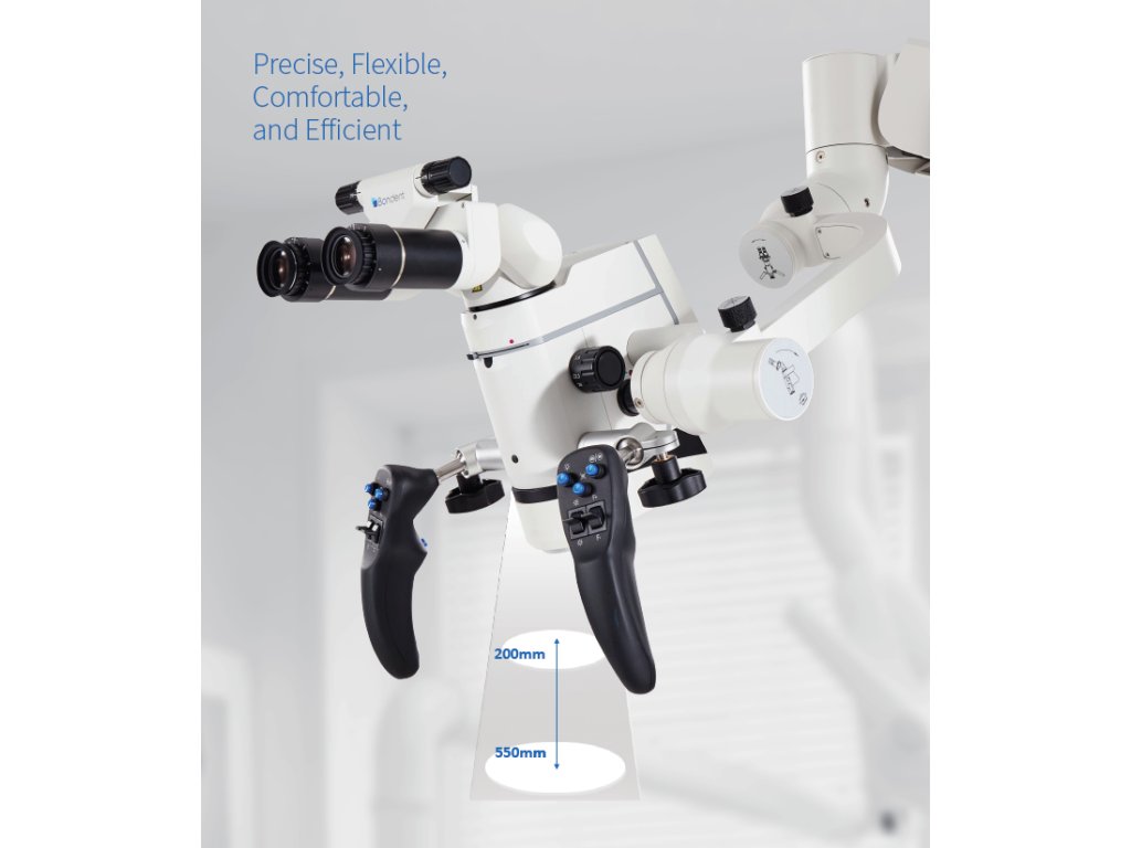Práce s mikroskopem nikdy nebyla pohodlnější. Díky elektromagnetickému brzdovému systému můžete mikroskop zastavit přesně tam, kde potřebujete – bez zpoždění či posunů. Ergonomická rukojeť zároveň umožňuje ovládat polohu čoček, jas, zaostření, fotografování i video – vše jednou rukou. Elektromagnetický zámkový systém: stabilita v každé pozici. Bezdrátový Bluetooth pedál a myš: ještě větší volnost během práce. Personalizovaná nastavení: přizpůsobte si systém svým preferencím.