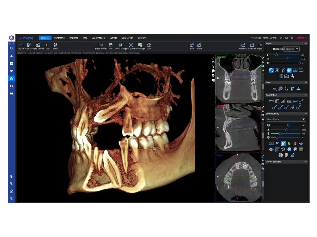 Softwarová platforma Planmeca Romexis® nabízí všestranné a intuitivní nástroje pro různé lékaře a odbornosti – pomáhá všem typům zubních klinik dosáhnout jejich plného potenciálu a poskytovat tu nejlepší možnou péči. Modul pro 3D zobrazování v softwaru Romexis podporuje všechny typy 3D snímků.